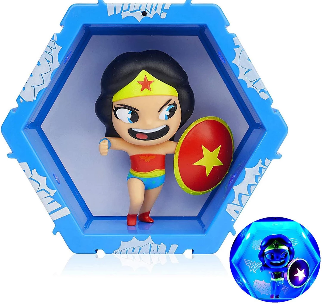 Wonder Woman from the DC Comics franchise figure, housed in a robust hexagonal POD complete with a mystery reveal backdrop. The perfect gift for all children and adults who love DC!