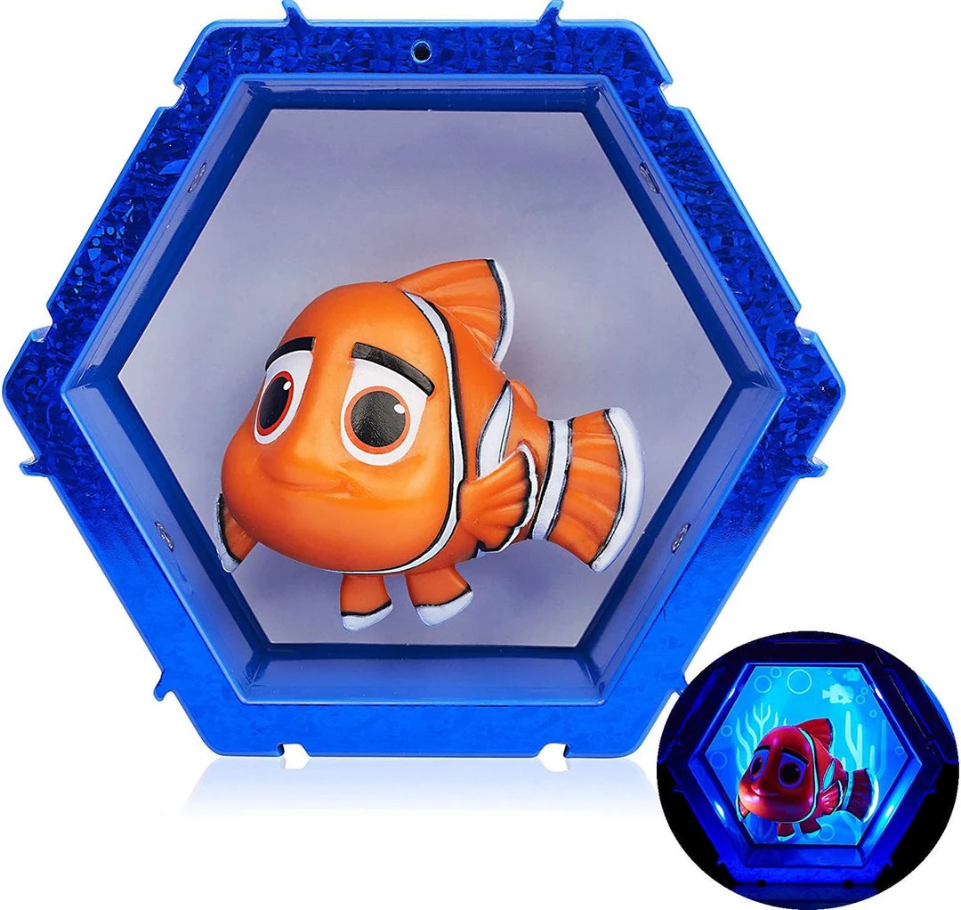 Nemo from the Disney Pixar Finding Nemo movie franchise figure, housed in a robust hexagonal POD complete with a mystery reveal backdrop. The perfect gift for all children and adults who love Disney.