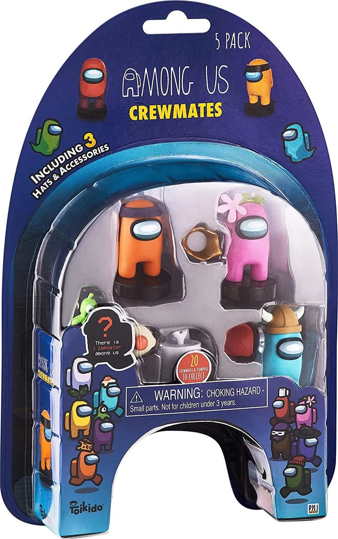 Includes 5 stampers, 3 accessories included 1 figures are hidden (the impostors!), approx 3″.