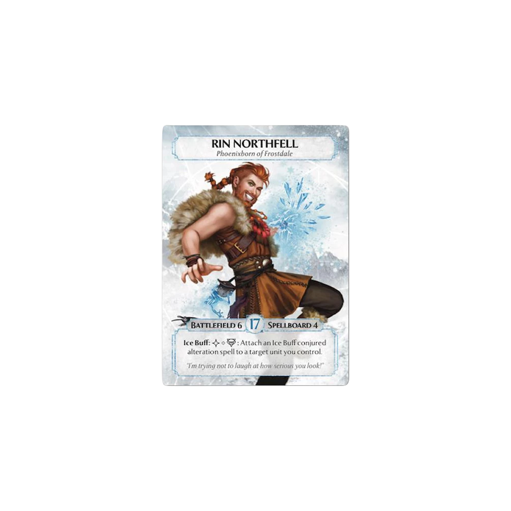 Rin Northfell is a jovial Phoenixborn whose lust for life and battle flares up like a beacon in his frigid homeland. Rin shuns the subtlety of complex magic, preferring spells and monsters as robust and as considerable as his spirit.