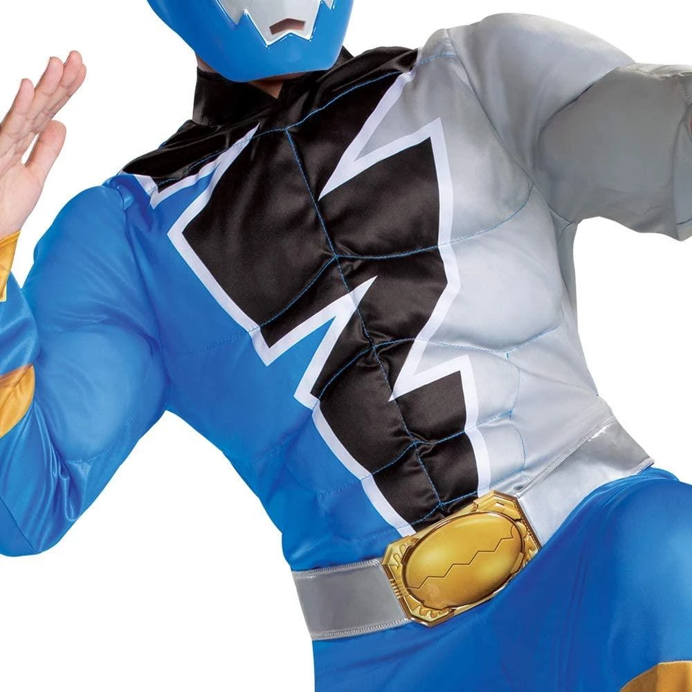 OFFICIALLY LICENSED BLUE POWER RANGER COSTUME – Save the earth from aliens and be part of the team with this muscle-padded Blue Ranger costume for kids
