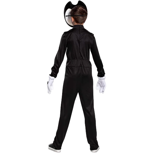 You can bring Bendy to life by dressing your little one up in this Bendy Costume for kids! The black polyester jumpsuit is accompanied by a stuffed satin bowtie and white foam-backed gloves. Secure the mask of Bendy’s face on with the elastic band so it stays put as they face all of the obstacles of Halloween night. Review the size chart for additional information. Shoes not included.