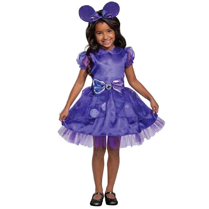 This Minnie Mouse Purple Potion Costume by Disguise will create a magical and enchanting Halloween for your little one! Mickey Mouse’s sweetheart has a new color! The Disney Minnie Mouse Potion Purple classic child costume by Disguise features a one-piece potion purple dress with puff sleeves, character cameo and purple tulle trim on skirt. Also includes a Minnie Mouse headband with bow. Shoes are not included. Materials – Dress 100% Polyester. Skirt Ruffle 100% Nylon. Peplum 100% Polyester Care Instructions – Hand Wash Cold. Do Not Bleach. Line Dry. Cool Iron If Needed. Do Not Dry Clean.