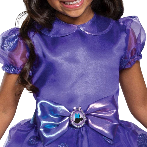 This Minnie Mouse Purple Potion Costume by Disguise will create a magical and enchanting Halloween for your little one! Mickey Mouse’s sweetheart has a new color! The Disney Minnie Mouse Potion Purple classic child costume by Disguise features a one-piece potion purple dress with puff sleeves, character cameo, and purple tulle trim on the skirt. Also includes a Minnie Mouse headband with bow. Shoes are not included. Materials – Dress 100% Polyester. Skirt Ruffle 100% Nylon. Peplum 100% Polyester Care Instructions – Hand Wash Cold. Do Not Bleach. Line Dry. Cool Iron If Needed. Do Not Dry Clean.