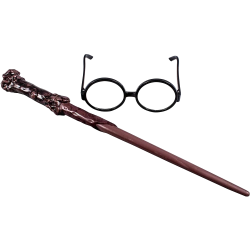 EQUIP YOUR WIZARD IN TRAINING with the best magic gear available, and help them in their quest, including a wand and a pair of non-prescription thick black-rimmed frames with clear fake lenses.