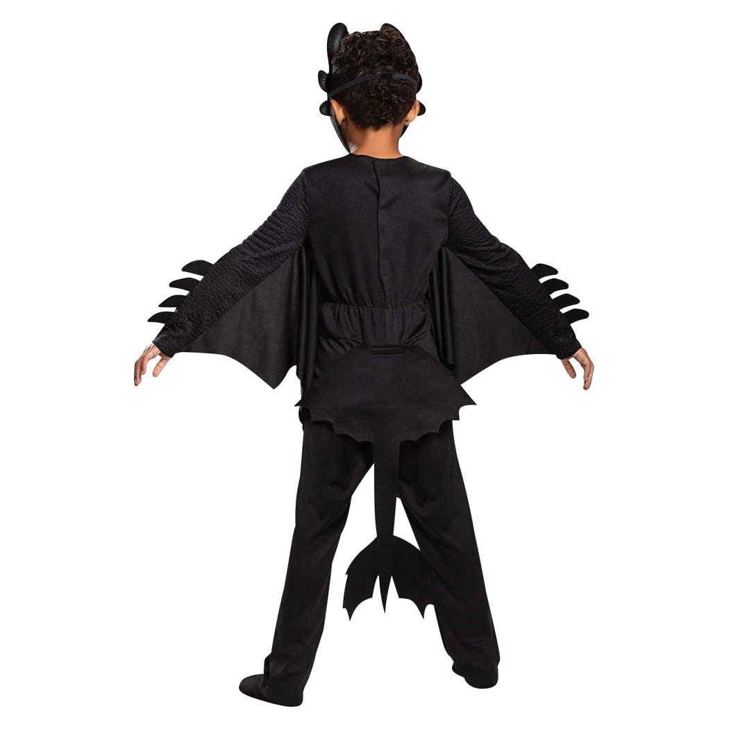 From the popular movie How to Train Your Dragon The Hidden World! Your little angel will be soaring through the sky this Halloween when you pick up the Toddler Deluxe Toothless Costume. If you’re looking for the perfect How To Train Your Dragon costume for your child this year, then don’t look any further than this one. Complete with a black Toothless jumpsuit with a detachable pair of wings and a tail, a pair of matching gloves, and a fun Toothless mask, you can’t go wrong with this special get-up. Buy yours today, and then team up with Hiccup, Astrid, and Light Fury for a night fit for loads of fun and fire-breathing! Jumpsuit with attached wings detachable tail and mask. Fits children sizes 7-8.