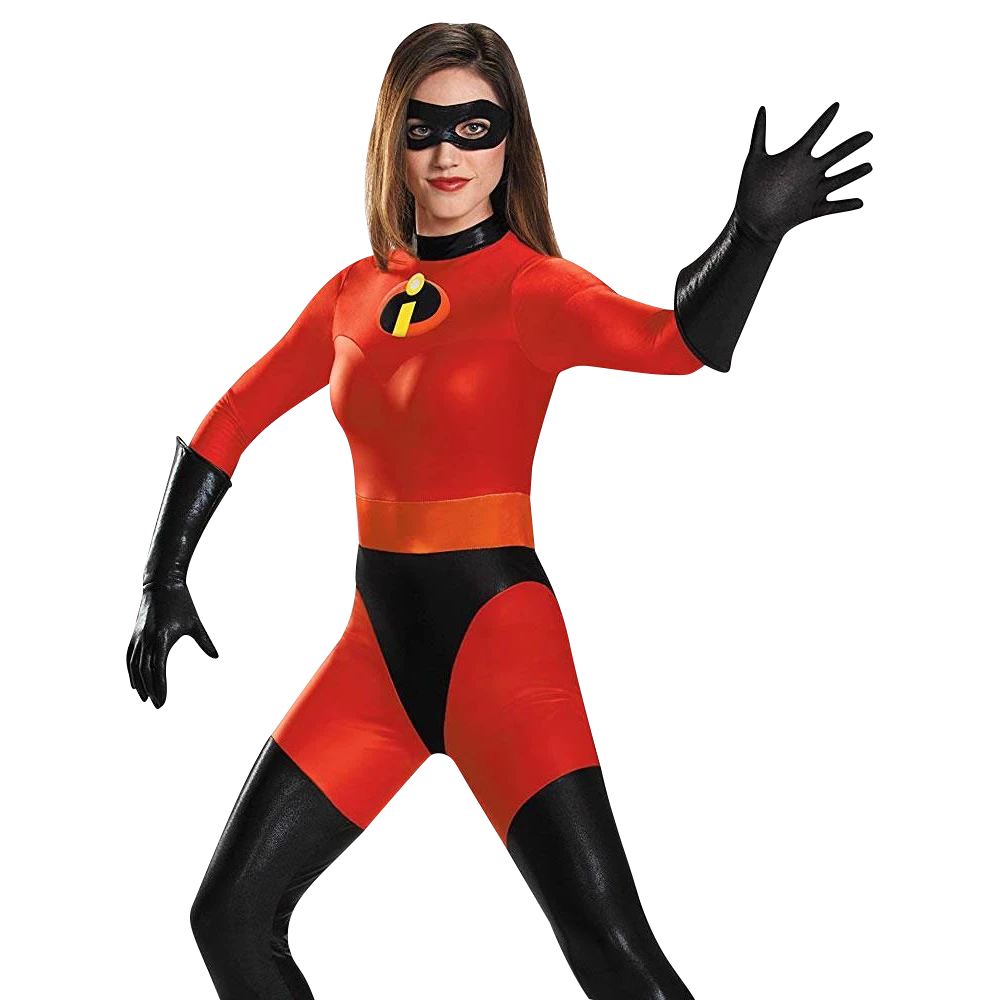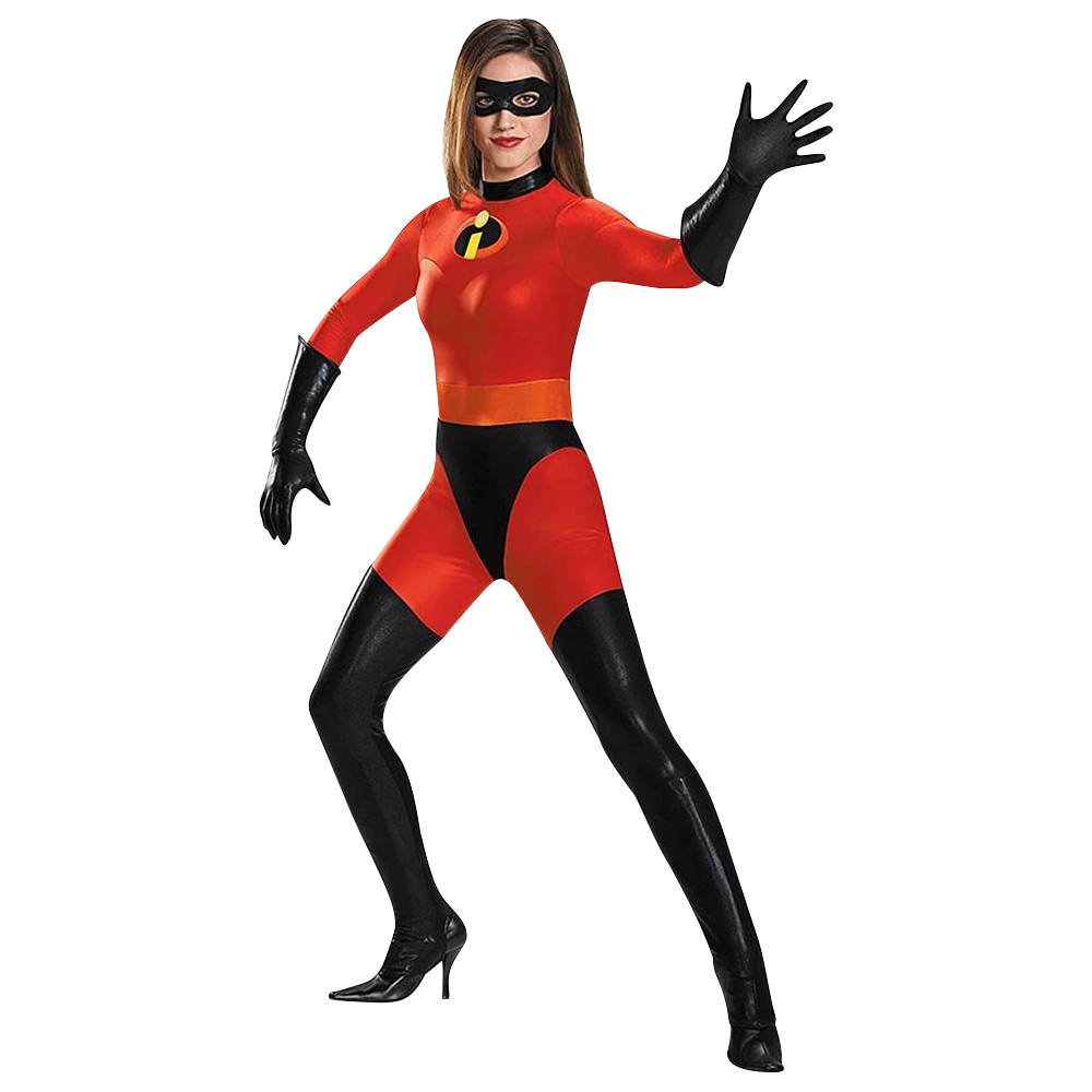 Be the life of the party this Halloween with this fun and flirty Disney The Incredibles Mrs. Incredible Bodysuit Women’s Adult Halloween Costume. It is made of 100-percent polyester and includes a printed bodysuit and a matching fabric eye mask. This women’s adult costume also comes with a pair of black gloves for added authenticity. It is available in women’s sizes and is an officially licensed Disney Incredibles costume. Simply add black pumps or flats to this Disney Halloween costume and you will be ready for trick or treating and the party.