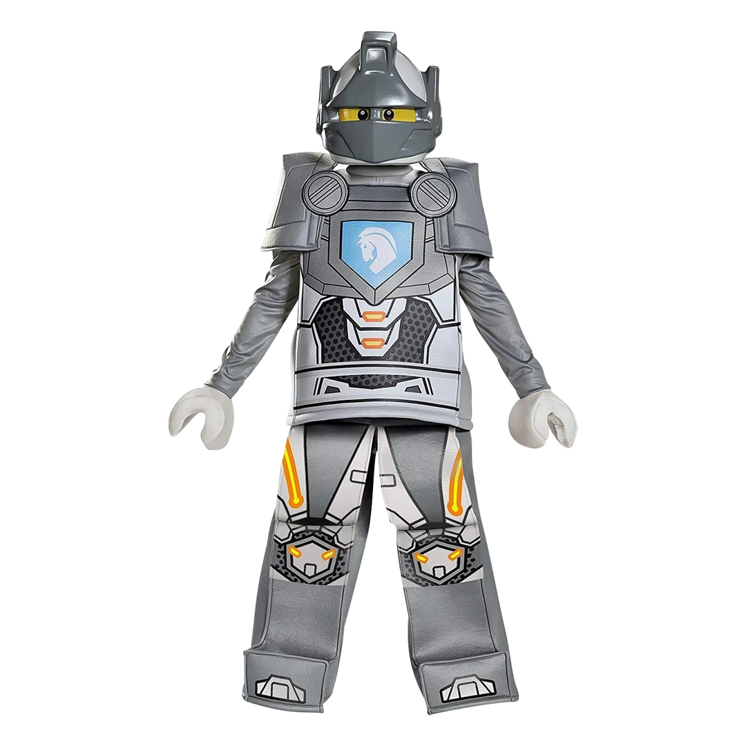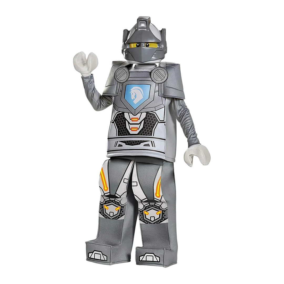 To get a look any more realistic than this Prestige Nexo Knights Lance Boys Costume, he’d have to build it himself out of LEGO bricks! But it’d be hard to move if for sure. – Shirt – Pair of Shoulder Pieces – Pants – Mask – Pair of Gloves
