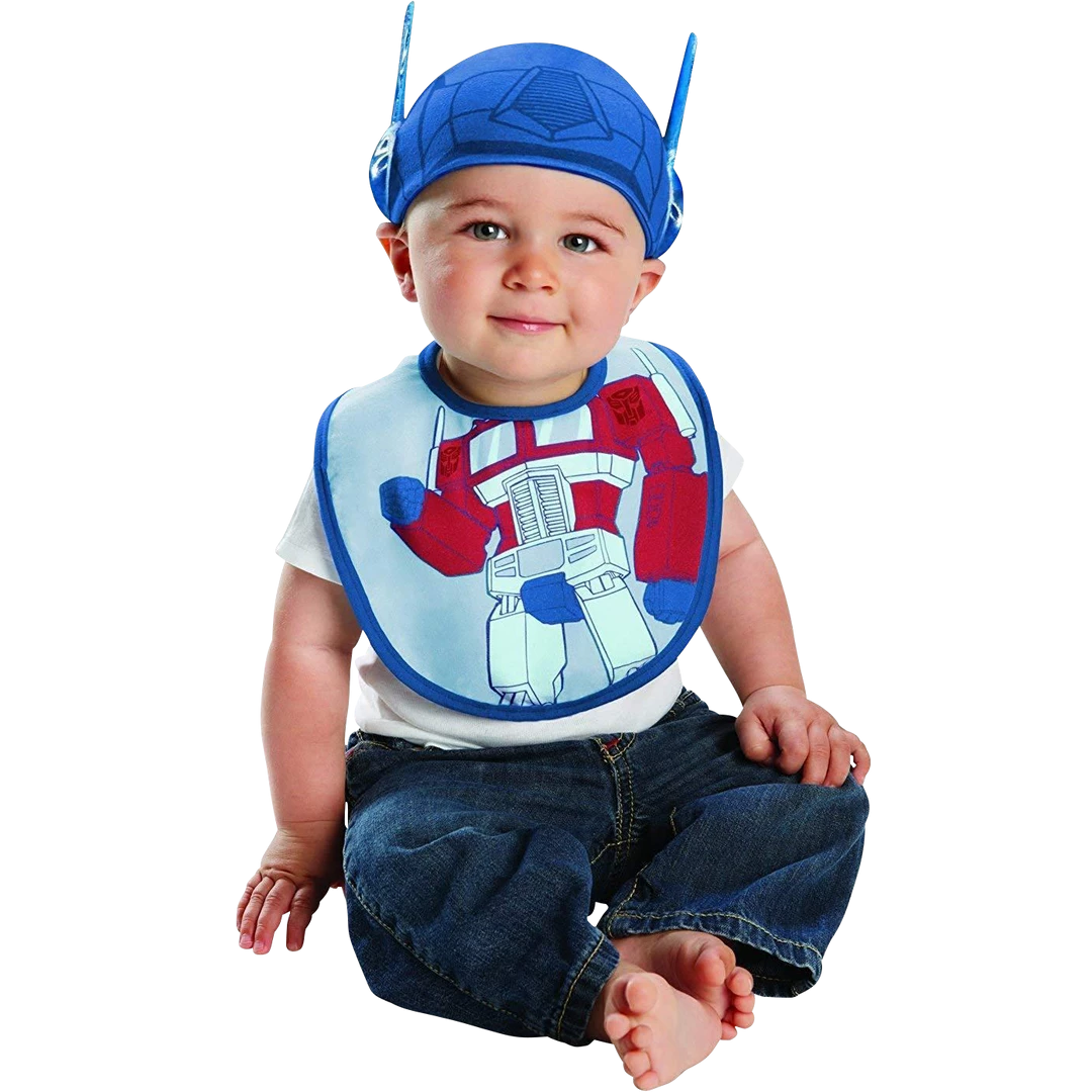 Transformers Optimus Bib and Hat Infant Costume will turn your tot into the leader of the Autobots in an instant. This year, why not go with a costume that is cute and convenient? With a costume this easy, you can transform your baby any day of the year!