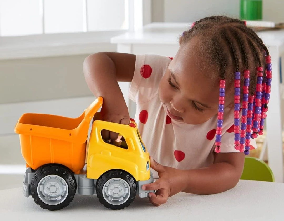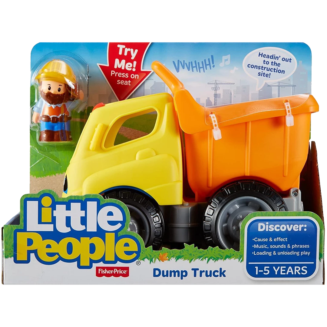 There’s hard work to be done at the construction site, loading and hauling the boulder away. But the Little People Dump Truck makes it child’s play with cool truck sounds, fun phrases & music when your toddler presses down on the driver’s seat. To unload the boulder, simply tip the truck bed and dump it out – then head off to do it over (& over & over) again!