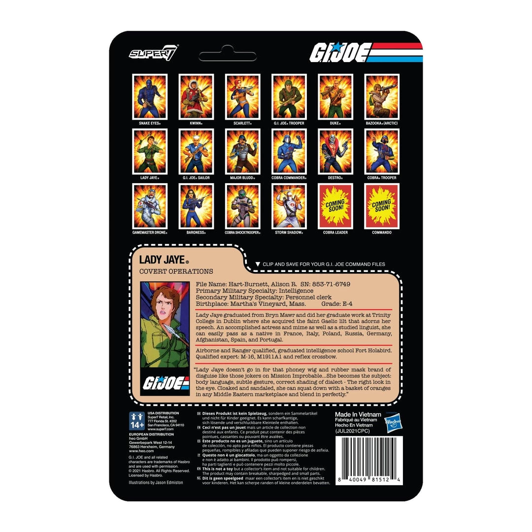 SKU: super7-6756480122926 Category: Action Figures Tags: 0840049815124, Covert Operations Female Animated Figure, Custom Package 10x8x3x0.15, FedEx Padded Pak (11.75" x 14.75"), G.I. Joe Lady Jaye, RE-GIJOW02-LJY-01, Super7, USPS Regional Rate Box A2 (10.9375" x 2.375" x 12.8125")