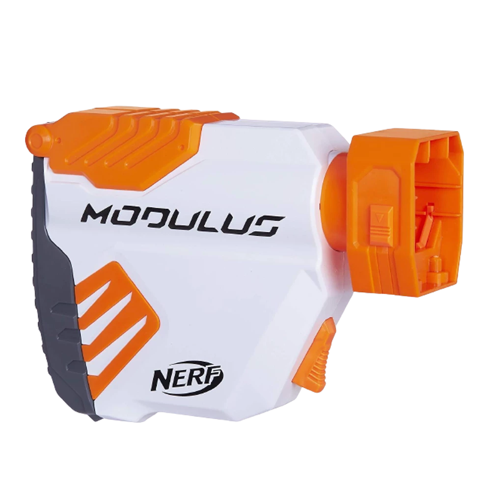 Kids can upgrade their blaster for any mission or battle with the Nerf Modulus Storage Stock. It easily attaches to Nerf Modulus blasters to provide added stability. The stock is extendable so battlers can adjust it for a custom fit. Flip open the stock butt to reveal storage for extra darts. Expand the customizing options with Nerf Modulus Upgrade Kits and accessories; with the full Nerf Modulus system, over 1000 different combinations are possible! Blasters, darts, upgrade kits, and accessories each sold separately. Hasbro and all related properties are trademarks of Hasbro.