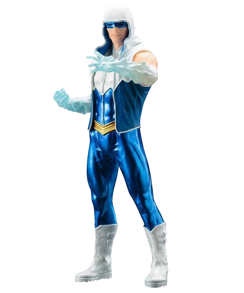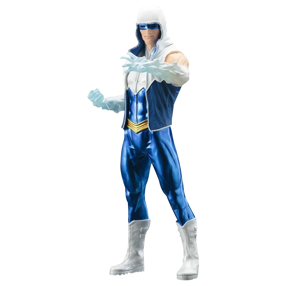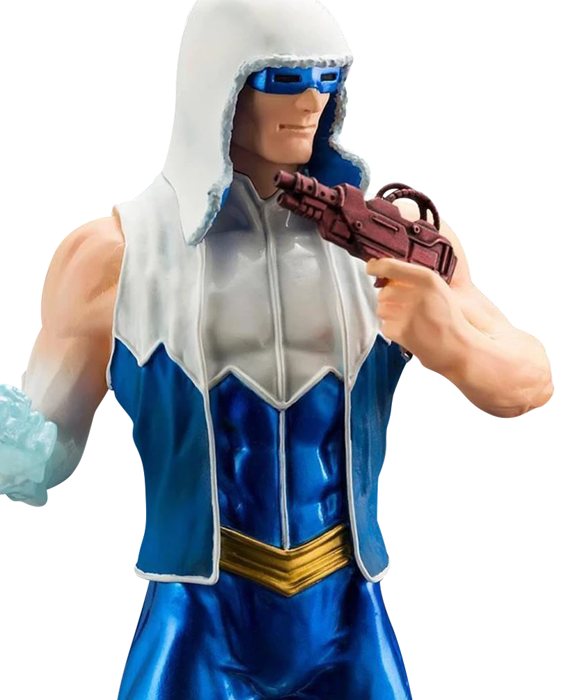 Kotobukiya bring’s more villains from DC Comics to their ARTFX+ 1/10 scale statue lineup with Captain Cold! Highly detailed sculpt includes two different arm pieces, allowing for display with either his cold gun or ice-covered arms. Leonard Snart wears his hooded blue and white vest and cold weather goggles, stepping straight from the pages of DC Comics! A Kotobukiya Japanese import