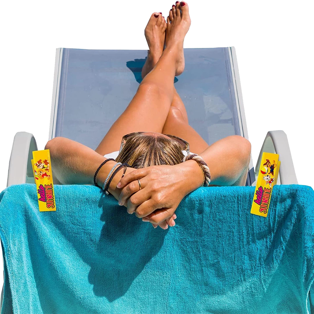 Finished with stunning print and extremely easy to carry and use, they will keep your beach towel securely attached to your lounger & stop your towel from blowing in the breeze, slipping around, or falling on the floor. These oversized beach towel clips are sure to become your beach essentials. Also Perfect for home pool use. Clips can hold papers, folders, notes, etc. LogoPeg Can also hold your T-shirt’s, beach hats/bags, etc. to the back of your lounger. Keeps your T-shirt’s dry. Multiple other uses at home, use them to keep opened packets shut, giant laundry pegs for heavy items.