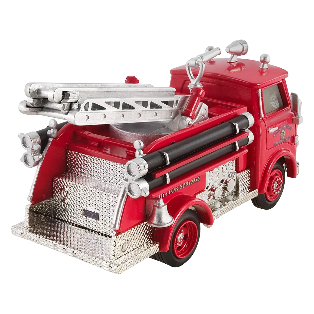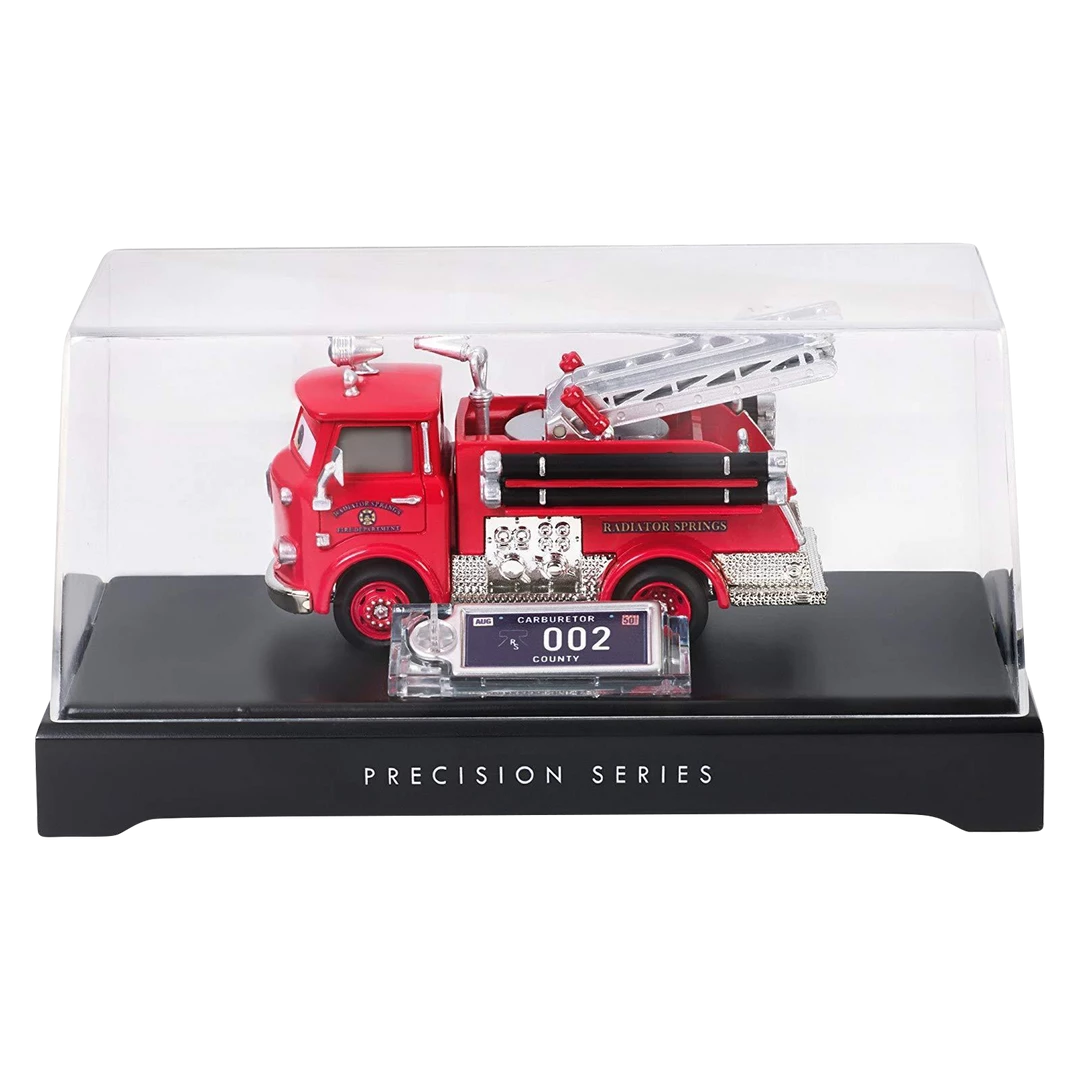 Enhance your Disney Pixar Cars collection with this exciting premium die-cast Red. The 1:55 scale firetruck features true-to-movie decos, rubber/PVC tires, and a ladder that swivels and extends. Each iconic vehicle in the full assortment has a personalized die-cast license plate and comes with an acrylic display case! Put them all together and recreate scenes from Cars, Cars 2, and Cars 3! Each vehicle sold separately, subject to availability. Colors and decorations may vary.