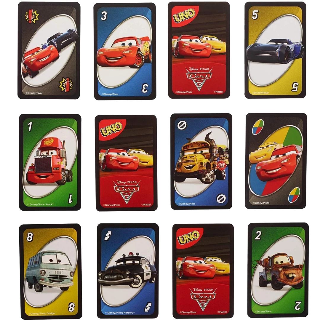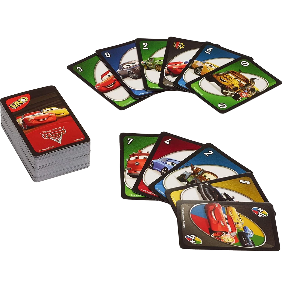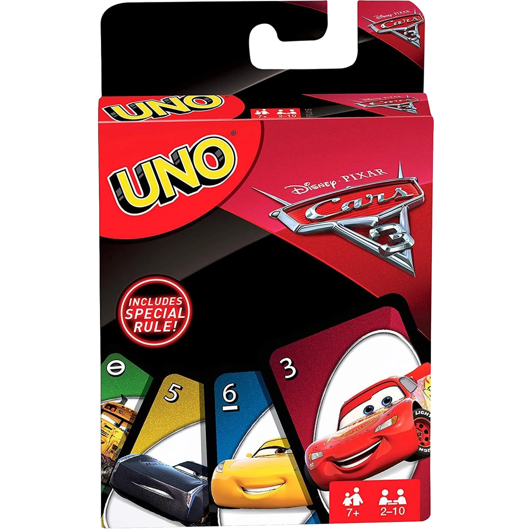 It’s the matching game you love, now featuring your favorite iconic characters from Cars 3! Players race to get rid of all their cards by matching a card in their hand with the current card shown on top of the deck. There are two customizable cards and a special new wild card: The Crash Up Rule! Accidents happen. If you draw this card from the pile, your cards “crash” into the next player’s. Lay the Crash Up Rule card on the discard pile, choose a new color, and then combine all your cards with the next player’s before you deal the combined cards evenly between the two of you. Score points by being the first to get rid of all the cards in your hand. First player or team to 500 wins. When you’re down to one card, don’t forget to yell “UNO!” Contains 112 cards plus instructions. For 2 to 10 players, ages 7 and older. Easy to pick up, impossible to put down.