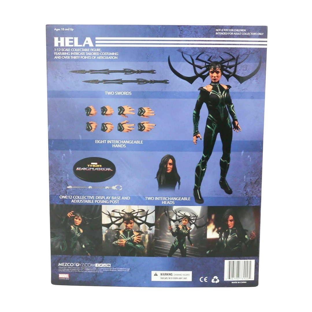 Planning to rule agar and create an Empire, The goddess of death must first face off against her young brother, Thor, and his team known as ‘the revenge’. The one: 12 collective Ragnar heal figure captures the malicious intent of the former Asgardian executioner! Presented in a film-accurate fitted suit with metallic accents and chest plate Armor, heal comes equipped with two necroswords made from obsidian and used to decimate the einjerjar, the elite warriors of agar. She features a one: 12 collective body with over 30 points of articulation, two (2) head portraits with hand paint shield-authentic detailing, eight (8) interchangeable hands, and one (1) one: 12 collective display base with logo with adjustable display post. Each one: 12 collective Ragnar heal is packaged in a collector-friendly box, designed with collectors in mind.