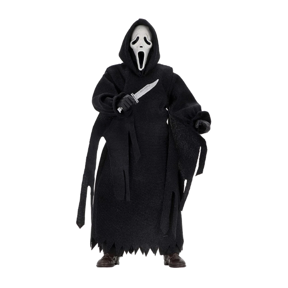 “Do you like scary movies, Sidney?” Making a return to the 8″ Cloth format is Ghostface from Scream! Ghostface stands 8 tall and is fully poseable, with a tailored robe, hood, and sleeves modeled after the real-life Ghostface costume. He features a screen-accurate sculpted mask, interchangeable hands, and comes complete with his signature knife.