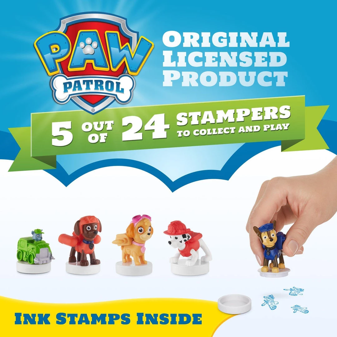 PAW PATROL IS ON A STAMP – With colorful features replicating the cartoon, fans of all ages can act out scenes and bring their favorite show to life with these self-standing PAW Patrol stampers!