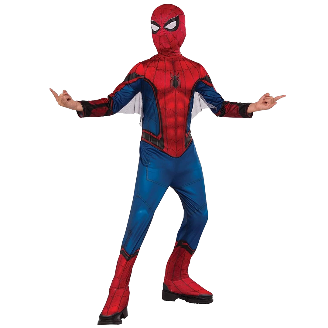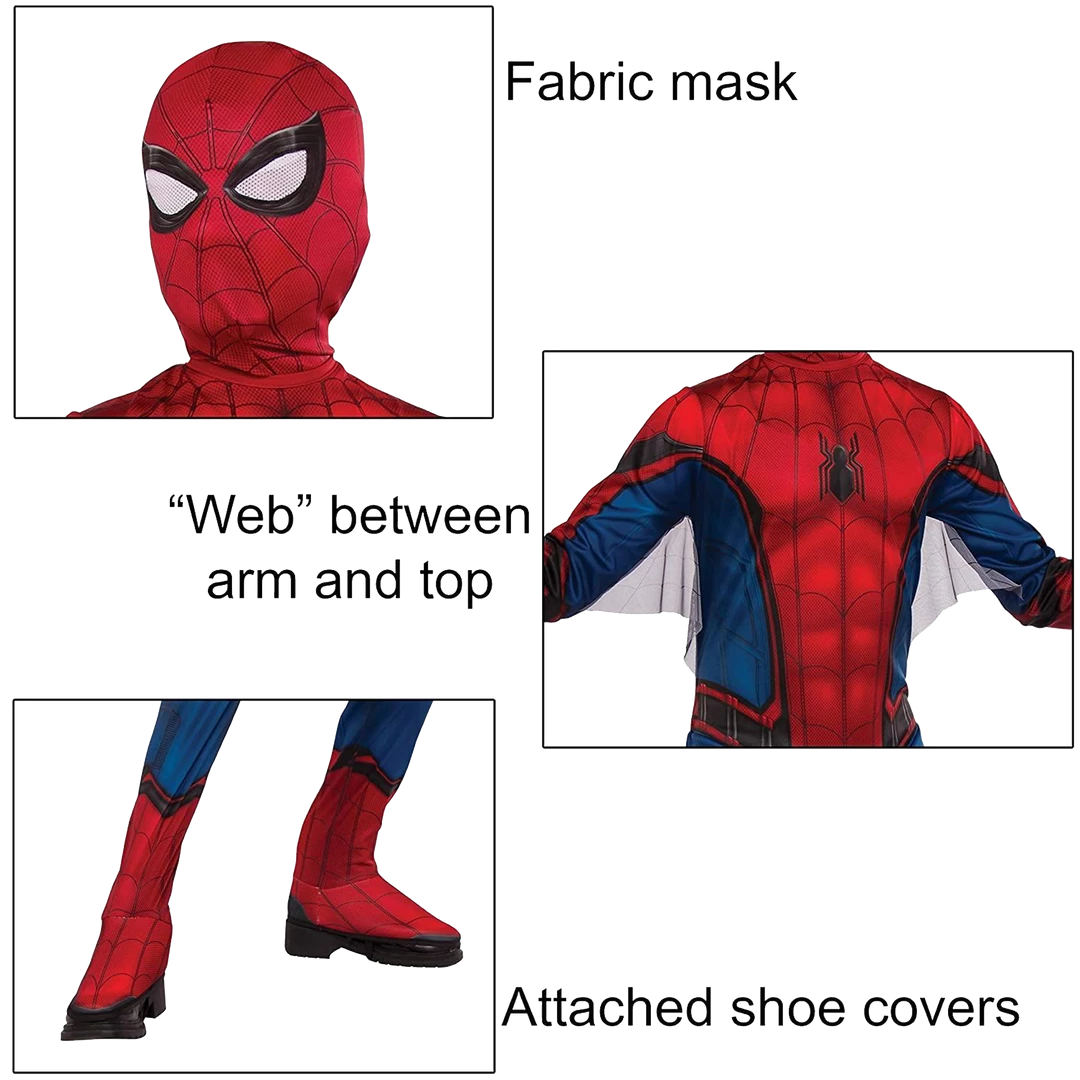 Officially licensed Marvel: Spider-Man far from home child’s red and blue Spider-Man costume jumpsuit with attached shoe-covers and fabric mask. Important: Costumes are sized differently than apparel, use the Rubies child Size Chart image, do not choose based on child’s age or clothing size. Whatever the reason, or the season, Rubie’s, the world’s largest designer and manufacturer of costumes and accessories, is pleased to offer you and your family The latest and most innovative concepts in masquerade. Family-owned, family-focused, and based in the U.S.A. Since 1950, Rubies has classic and licensed costumes and accessories in sizes and styles for your entire family.