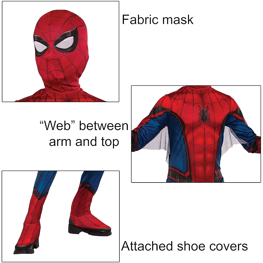 Officially licensed Marvel: Spider-Man far from home child’s red and blue Spider-Man costume jumpsuit with attached shoe-covers and fabric mask. Important: Costumes are sized differently than apparel, use the Rubies child Size Chart image, do not choose based on child’s age or clothing size. Whatever the reason, or the season, Rubie’s, the world’s largest designer and manufacturer of costumes and accessories, is pleased to offer you and your family The latest and most innovative concepts in masquerade. Family-owned, family-focused, and based in the U.S.A. Since 1950, Rubies has classic and licensed costumes and accessories in sizes and styles for your entire family.