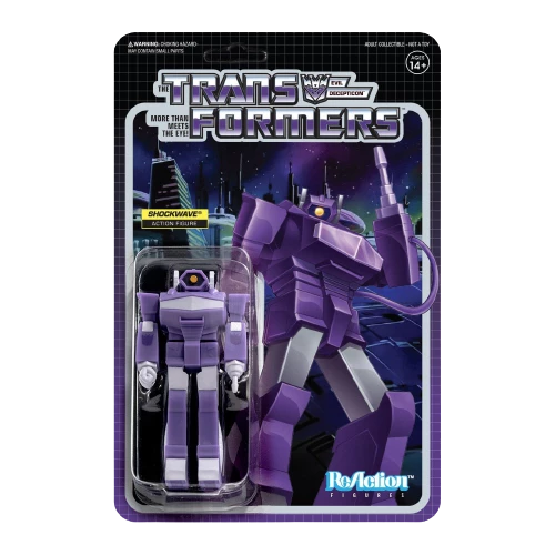 The Super7 x Transformers collaboration expands as the Autobots and Decepticons join the 3.75-inch ReAction Figure world! Shockwave, the logic-driven leader of the Decepticons, comes packaged on a card back featuring brand new retro-style art. The figure does not convert.
