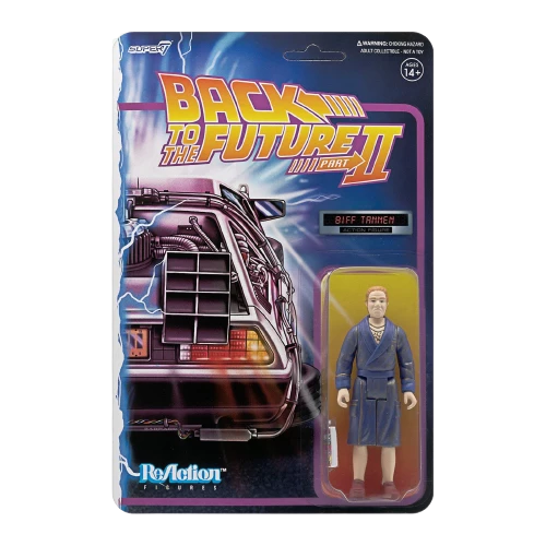 From Super7, the time travelers from Back to the Future are joining the ReAction retro figure line. Based on the Back to the Future sequel, the Biff Tannen ReAction figure stands 3.75 inches tall and features five points of articulation.