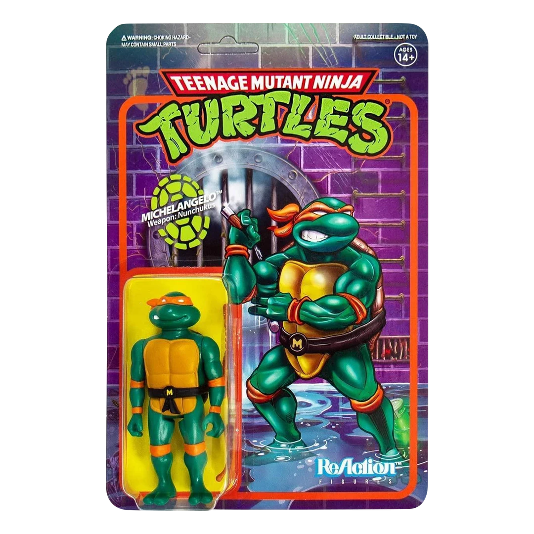 From Super7, the Teenage Mutant Ninja Turtles are joining the ReAction retro figure line. Based on the classic animated series, each TMNT ReAction figure stands 3.75 inches tall and features five points of articulation. Nunchucks and pizza slice fit into the figure’s hands. From the Teenage Mutant Ninja Turtles animated series.